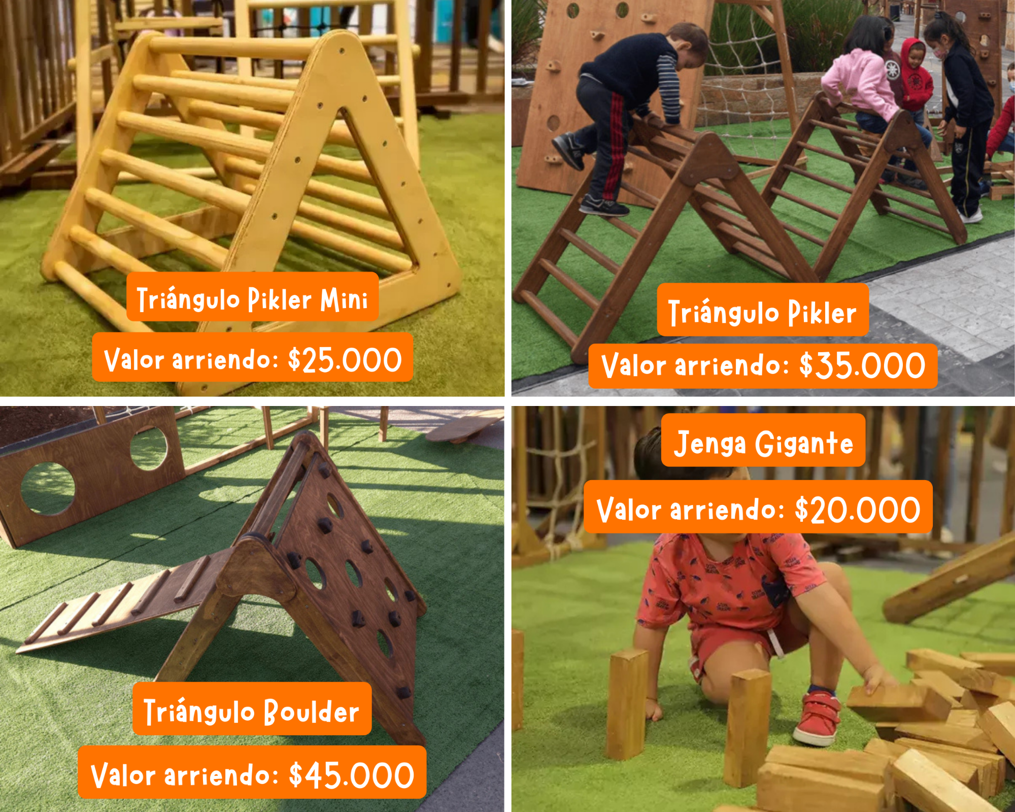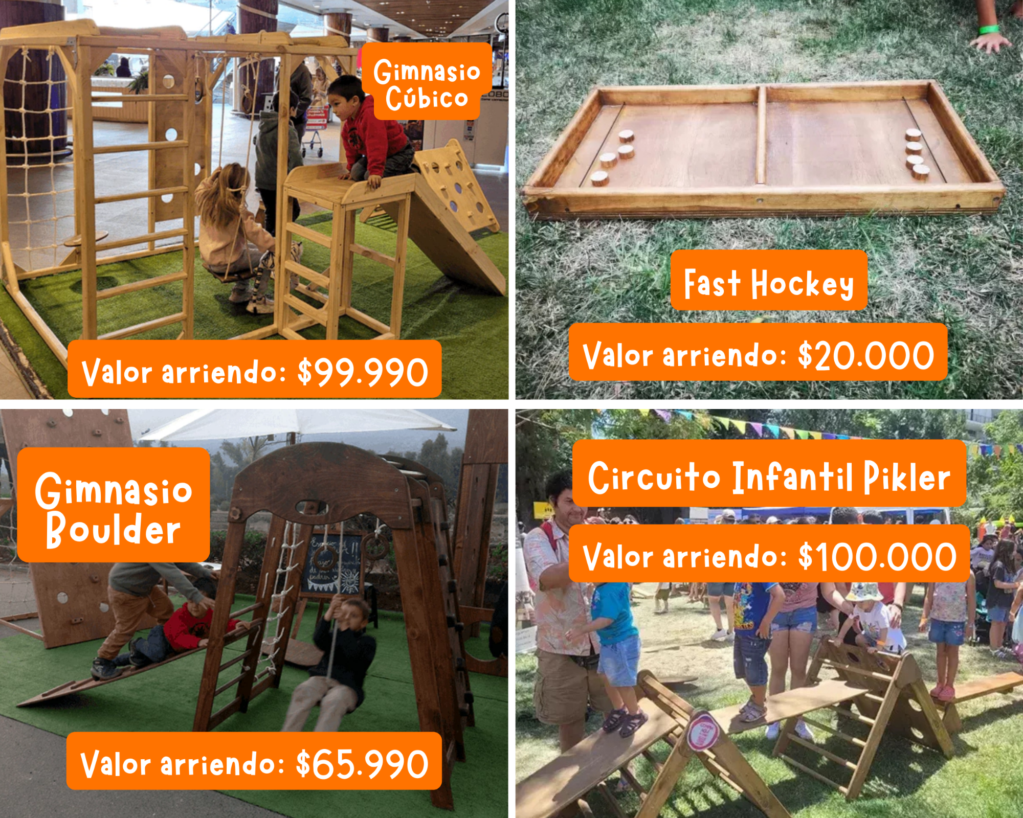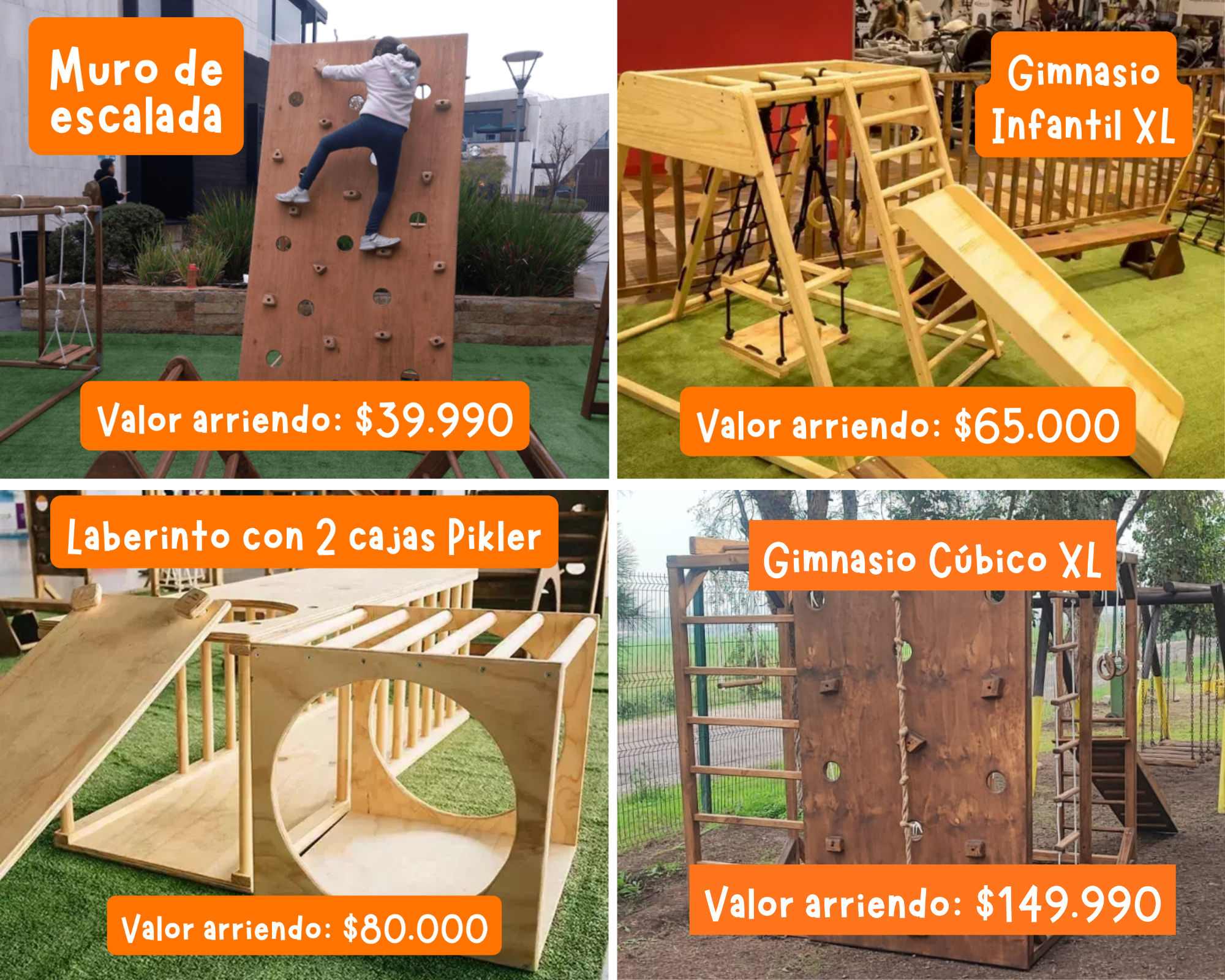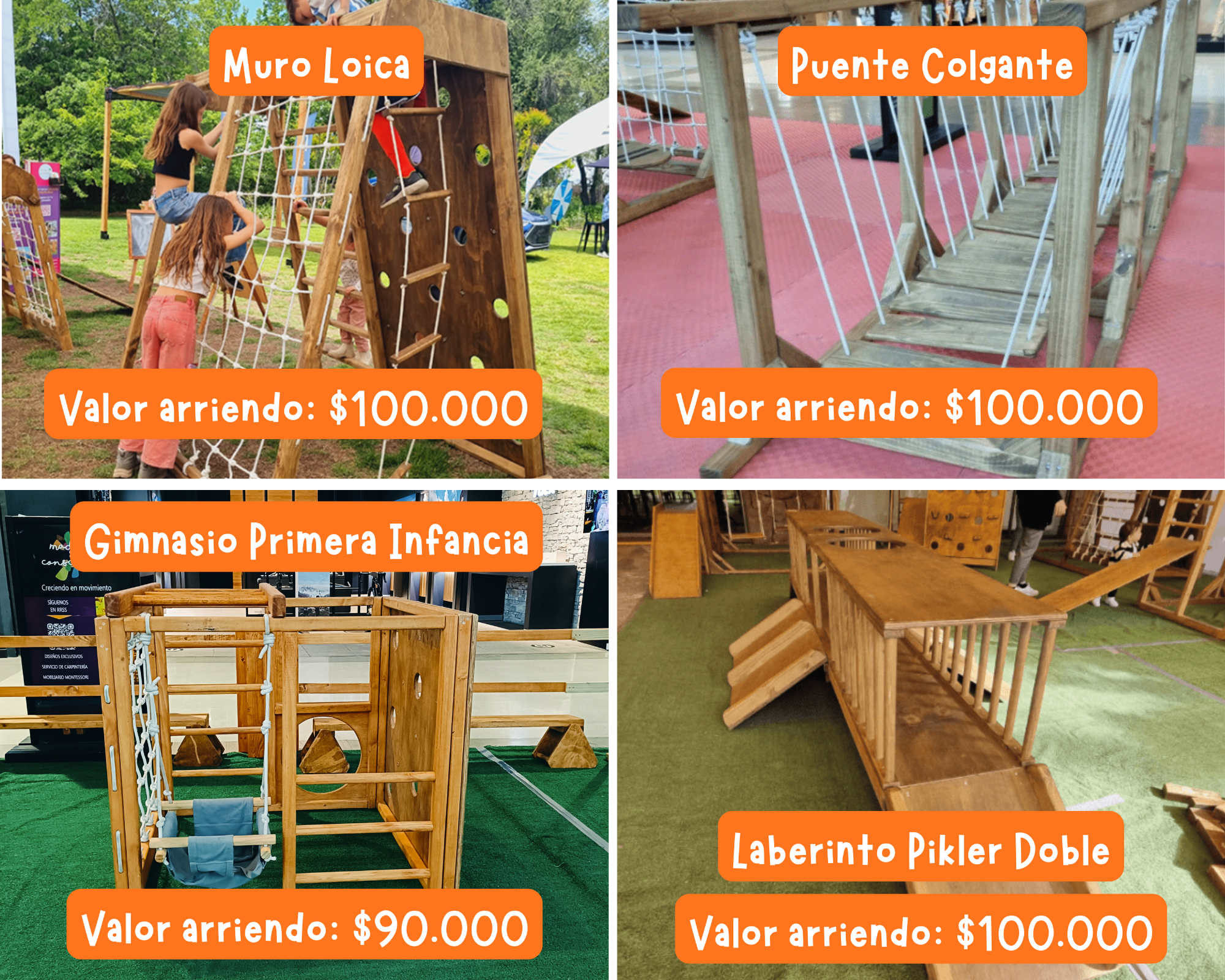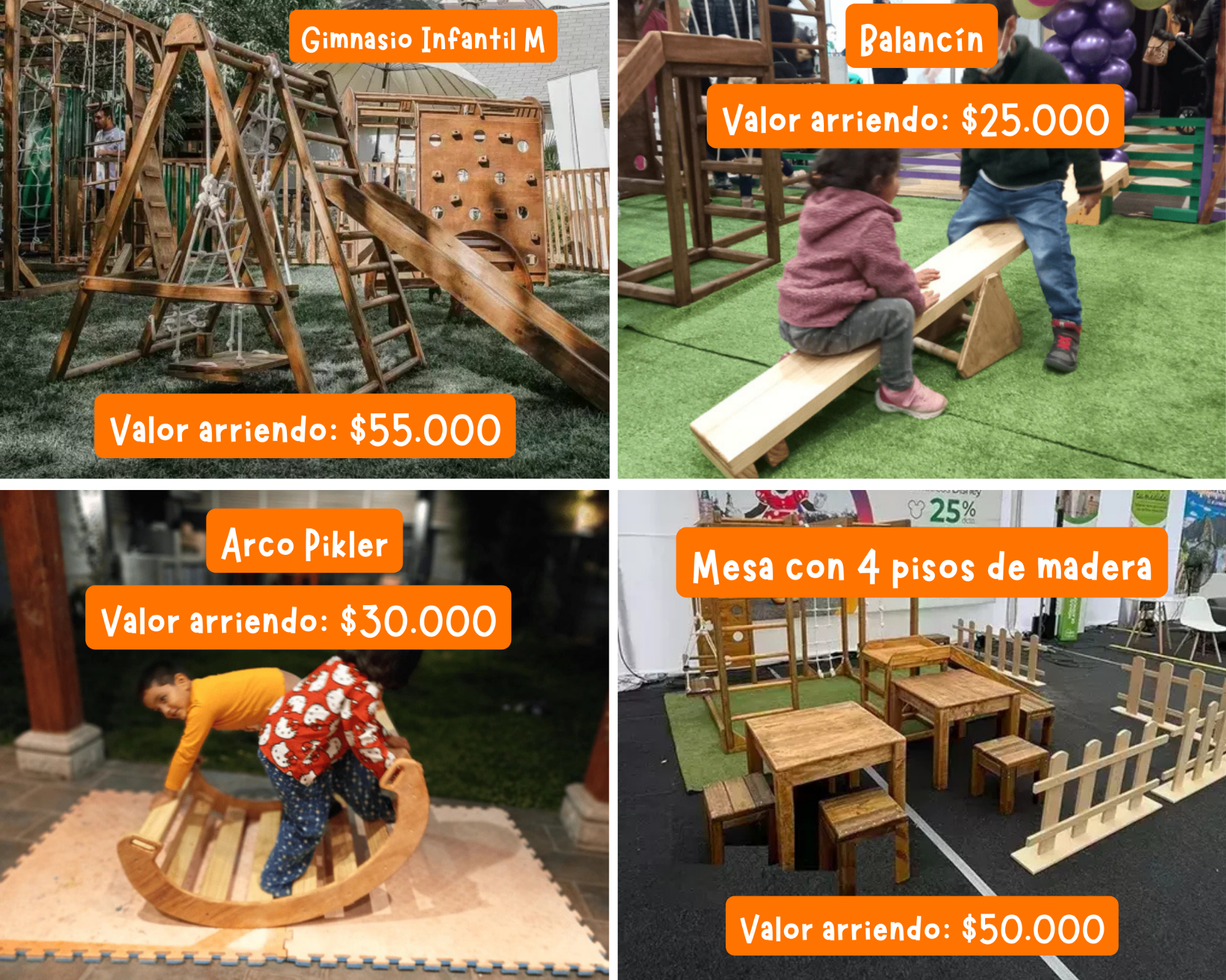 Ofrecemos arriendo de juegos y gimnasios infantiles de madera para eventos, colegios, jardines y espacios familiares.