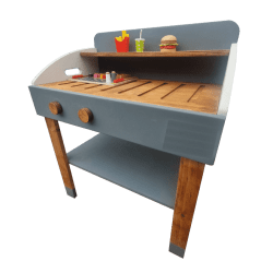 Su construcción es en Pino Sustentable con protector de madera color roble.