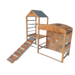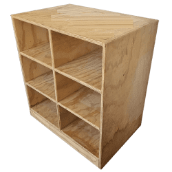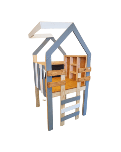 Su construcción es en Pino Sustentable con protector de madera color roble.